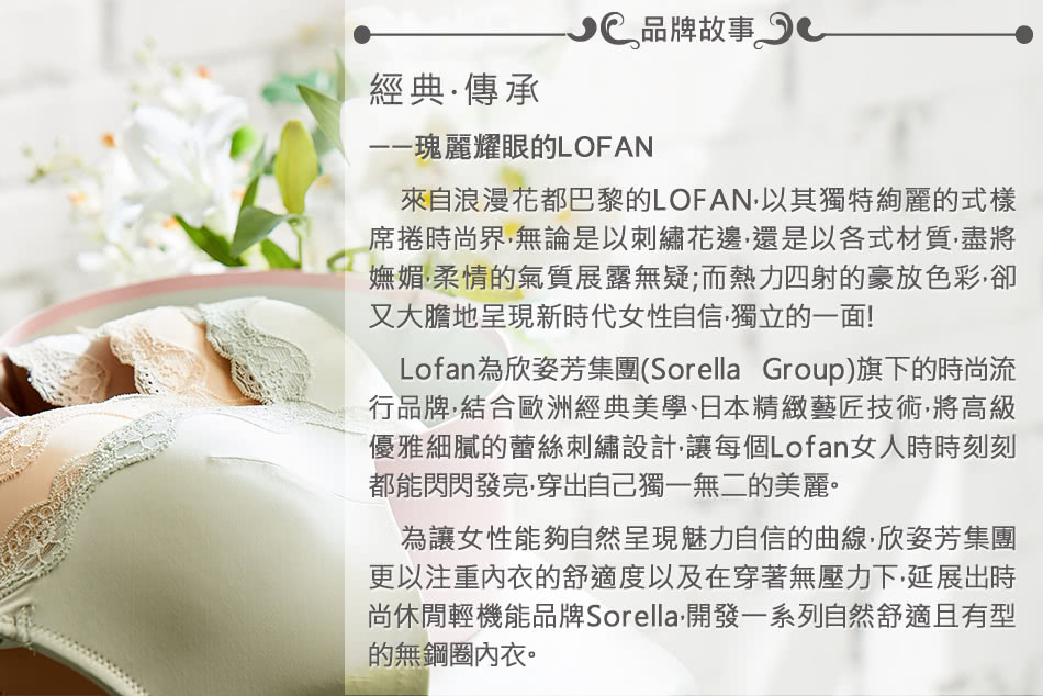 選用法國進口Leaver Lace,柔軟細緻有彈性,拉角設計提托有型。