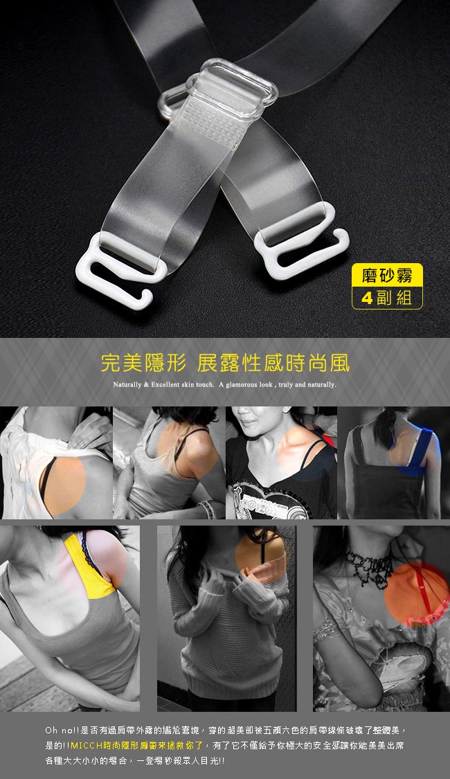 【MICCH】時尚隱形優質彈力透明包膠勾肩帶四副入(磨砂霧)各種罩杯款式種類怎麼看胸部小的人適合穿嗎