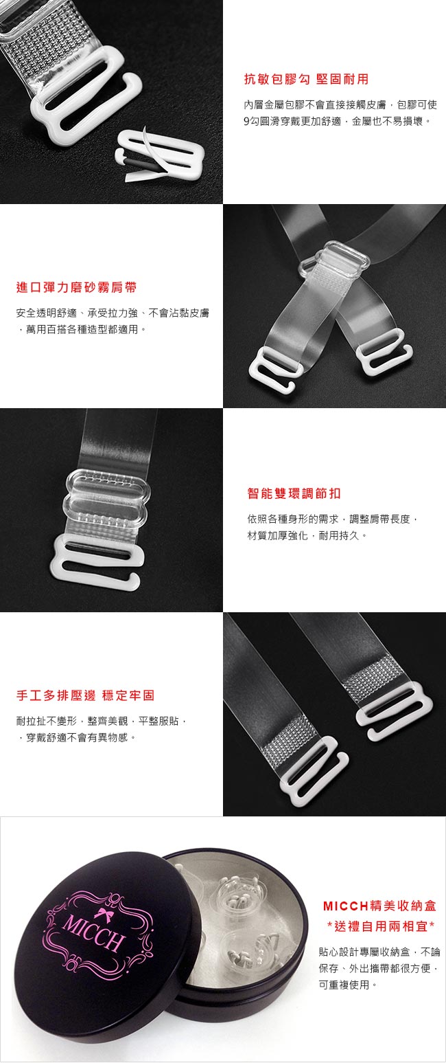 【MICCH】時尚隱形優質彈力透明包膠勾肩帶四副入(磨砂霧)有開箱心得文可以看嗎