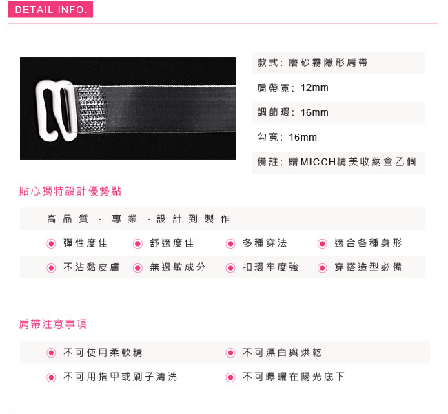【MICCH】時尚隱形優質彈力透明包膠勾肩帶四副入(磨砂霧)質料好嗎穿起來舒服嗎還有什麼優缺點