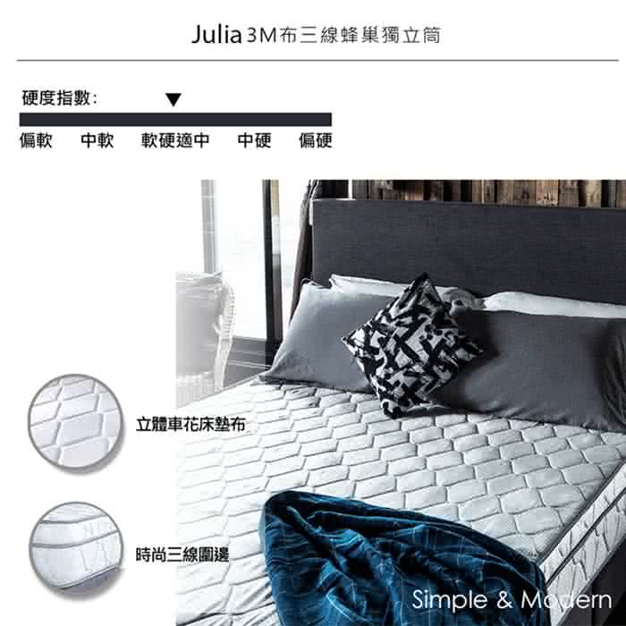 【obis】Julia三線3M防潑水蜂巢乳膠獨立筒床墊-雙人加大6*6.2尺23cm品質好嗎耐用嗎睡起來舒服嗎