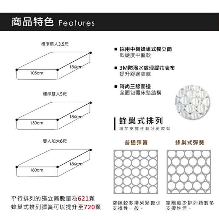 【obis】Julia三線3M防潑水蜂巢乳膠獨立筒床墊-雙人加大6*6.2尺23cm到哪裡買比較便宜還有哪些類似商品